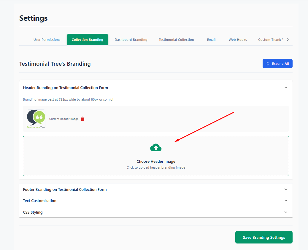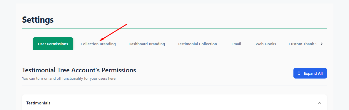 You can customize your Testimonial Tree account by adding your company logo and brand colors. These settings help create a consistent, professional look across your dashboard and testimonial collection pages.