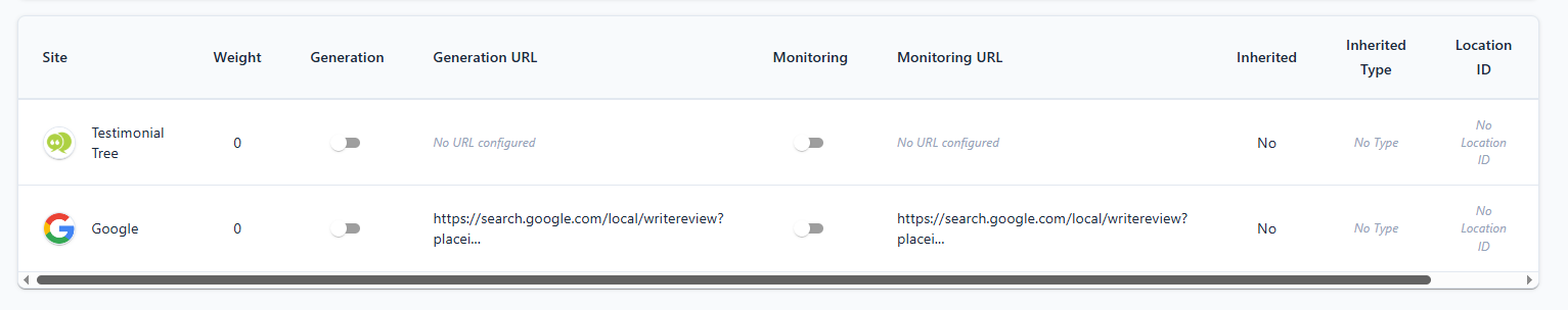 This site is now added to your Review Generation page. If you also want to pull in existing reviews from this site and have any future reviews pulled into Testimonial Tree you would make sure Monitoring Enabled is toggled on. (Note that after completing these steps it does take up to 48 hours for reviews to populate from the third-party site into your account and then new reviews are pulled in on a weekly basis).