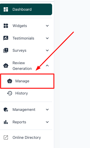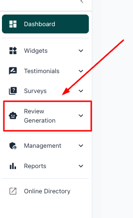 Step 1: From your dashboard click on Review Generation in the Navigation Bar