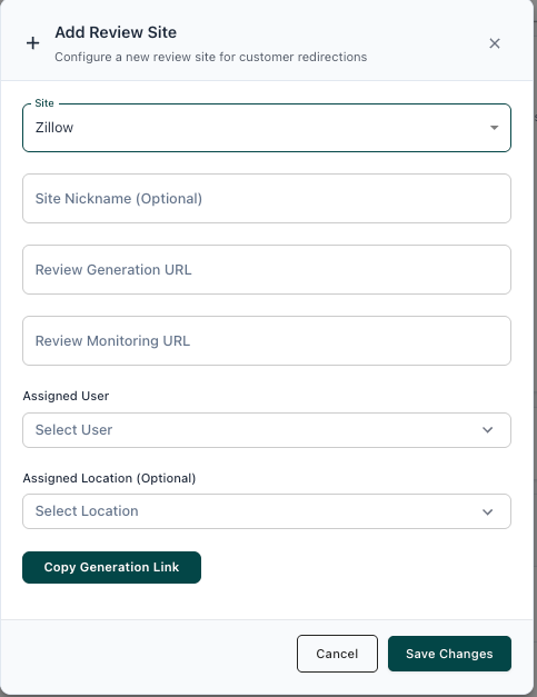 You can add your Zillow URL to your Review Generation page to both Generate new reviews as well as Monitor your existing reviews.