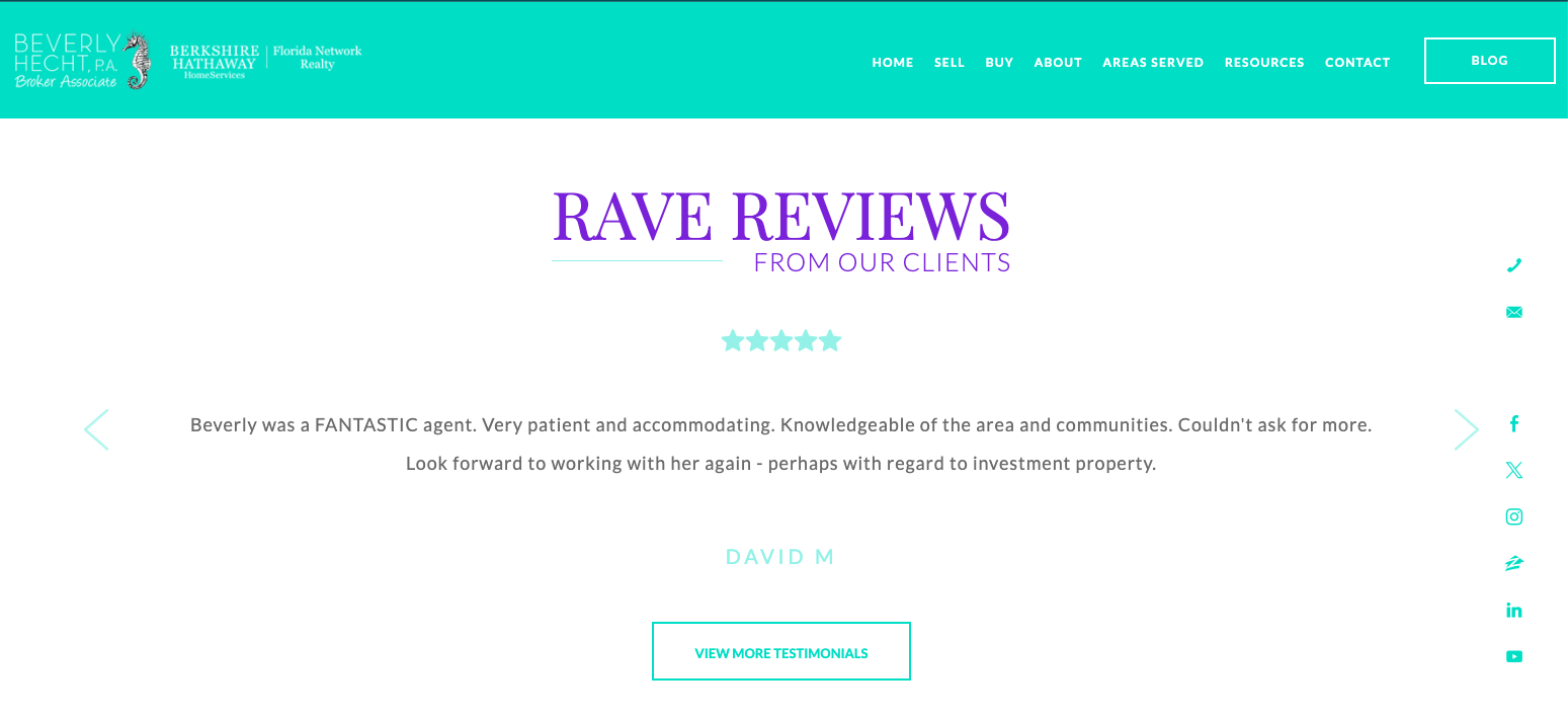 Testimonial Tree website widgets work with Agent Image websites. Below are some examples of testimonials and reviews on agent websites. There are several styles available and will produce a snippet of code that can be pasted into the HTML into the page. Testimonials and reviews will auto-published based on your settings in Testimonial Tree.
