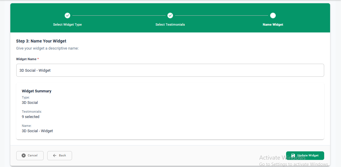 Step 4: Rename your widget, if necessary, then click Update Widget