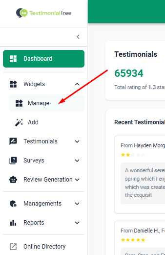 Step 1: From your Dashboard select Widgets and Manage Widgets