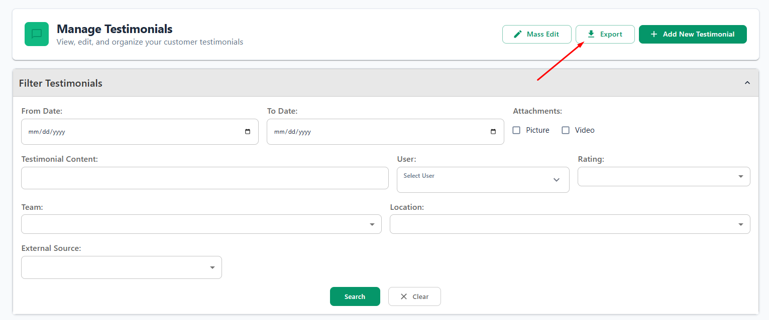 Steps to Export Testimonials