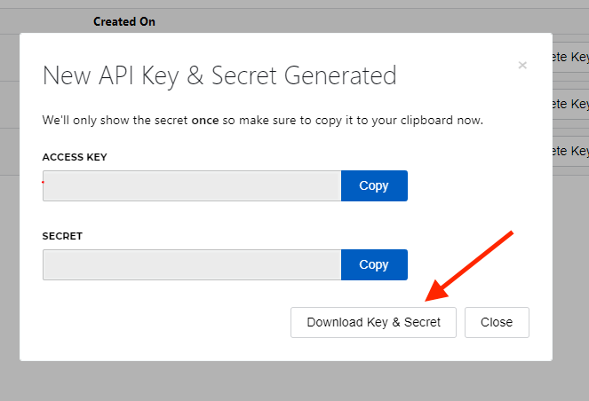 Once the new Keys generate, please download and then forward on to your onboarding specialist at Testimonial Tree.