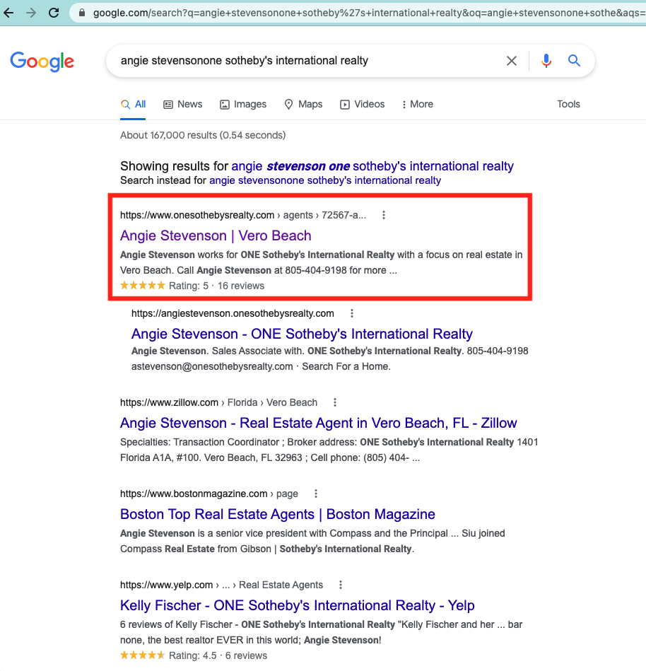 Reviews rich snippets populates stars on your website and agent profiles in Google search results Testimonial Tree website widgets
