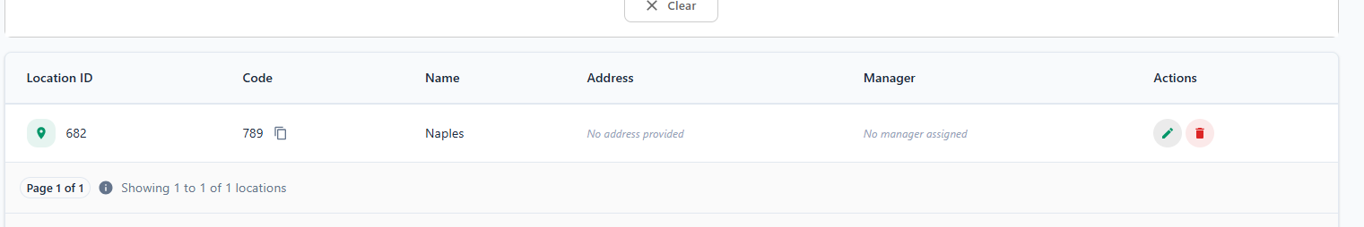 Step 4: Now on the Locations Management you will see the Location you added, and you will be able to edit and/or delete on the right-hand side