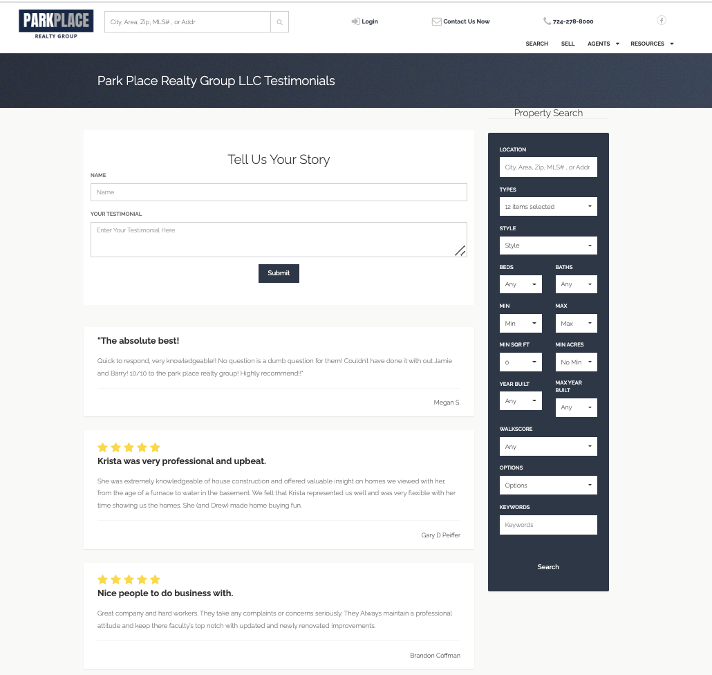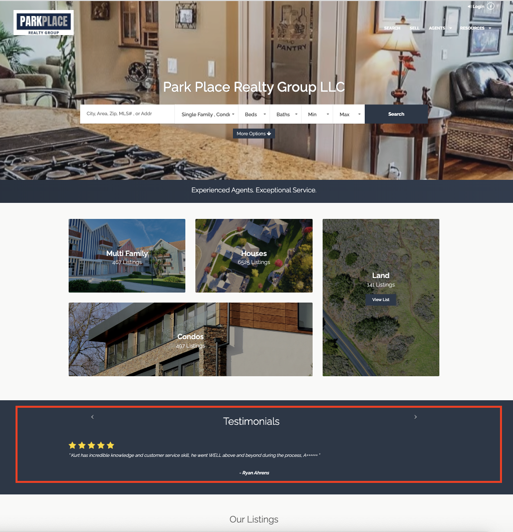 Publishing testimonials widgets and settings are controlled in the kvCORE websites and IDX settings.