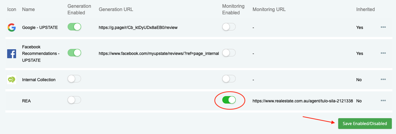 Step 6: Back on the Review Generation page, make sure the Monitoring Enabled button is toggled on (green) and Save Settings