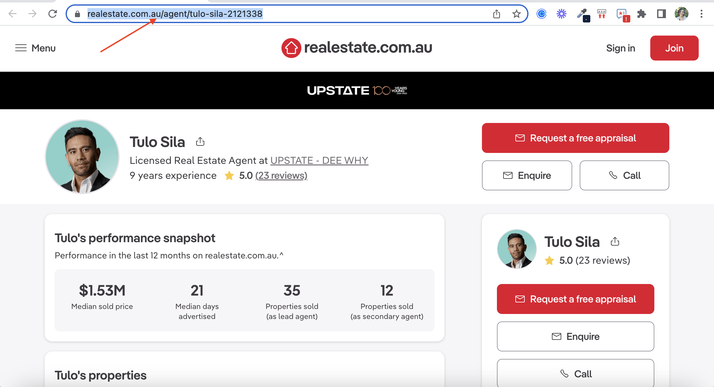 Step 4: Now go to Realestate.com.au and navigate to your profile page and copy the page URL