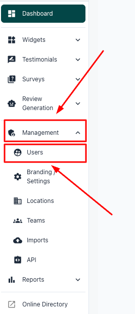 1. Locate your Management - User page from the left-hand side Navigation bar
