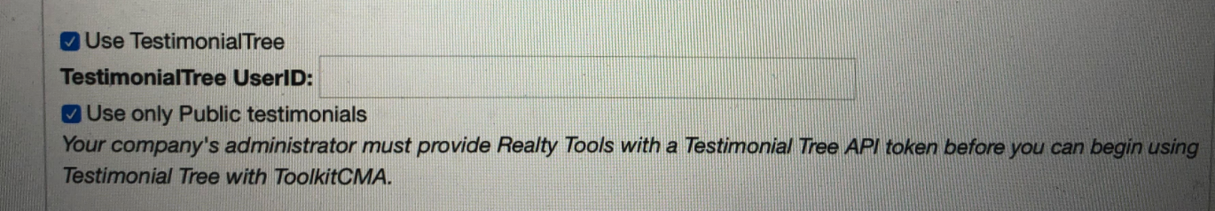 Step 1: Your company Admin must provide Realty Tools with the Testimonial Tree API Key. Once this has been provided you can move on to the following steps: