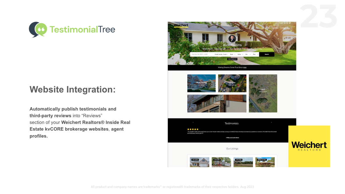 Testimonial Tree - Weichert REALTORS® websites integration (BoldTrail - kvCORE by Inside Real Estate) allows brokerages to: